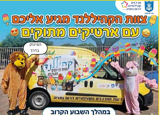 ​צוות קהיללנד וחניכי קפה לנוער של רשת מרכזים קהילתיים דרום נתניה מגיעים לשמח ולהפתיע את שכונות דרום נתניה,