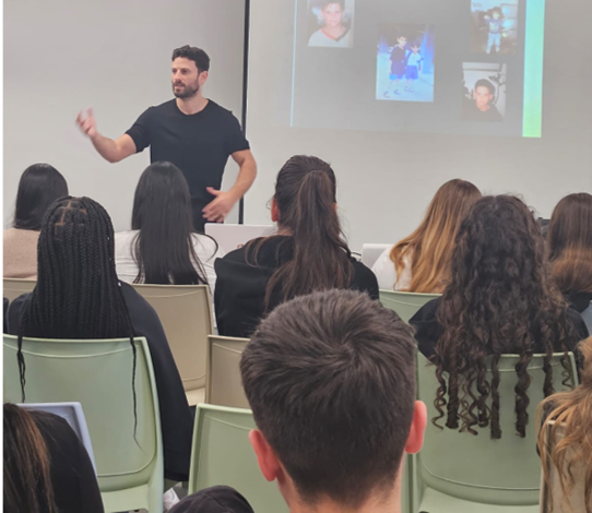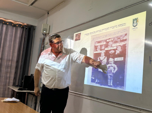 את העדות נתן ברוך גרשטיין, דור שני לניצולי שואה ומנהל תוכניות לימודים באגף העל יסודי המינהל החינוך והתרבות בעירייה, לתלמידי שכבה ח' בבית ספר שי עגנון.