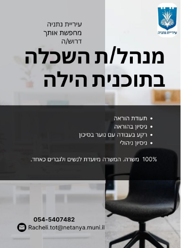 ​​עיריית נתניה מחפשת אותך דרוש/ה מנהל/ת השכלה בתוכנית הילה