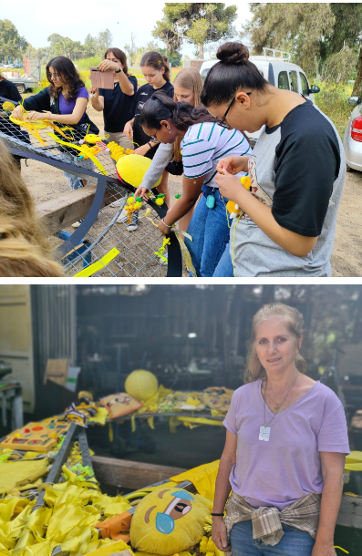 אסנת: "הרעיון הוא פרויקט חברתי חינוכי. חשוב לי נושא הקיימות, ולכן ביקשנו מתלמידים שיאספו פסולת תעשייתית צהובה כולל צעצועים, בדים, חומרים והתחלנו למלא אותו. ביום ראשון הוא כבר יעמוד בכיכר העיר (העצמאות) ויגיעו קבוצות תלמידים וגם עוברי אורח יוזמנו ליצור - ולמלא את הפסל בחומרים ממוחזרים בצבע צהוב".
