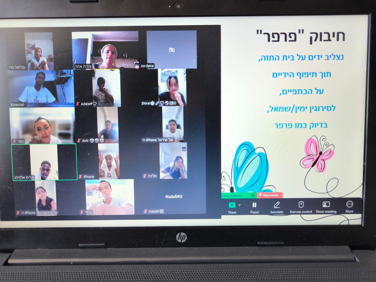 הילדים שיתפו פעולה מהבתים ונהנו מתיפוף על הגוף ועל שולחן או כסא סמוך. הפעילות הזו עוזרת לילדים לשמור על כושר ולהיות בתנועה מתמדת בסיועו של דוד המורה לחנ״ג.