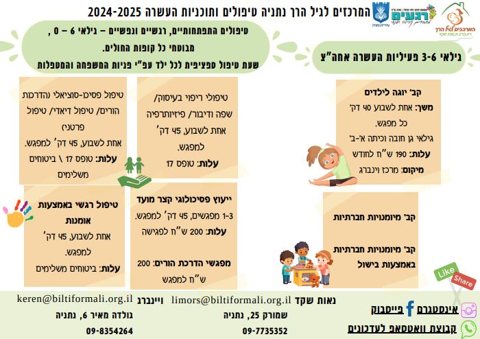 המרכזים לגיל הרך נתניה טיפולים ותוכניות העשרה 2024-2025