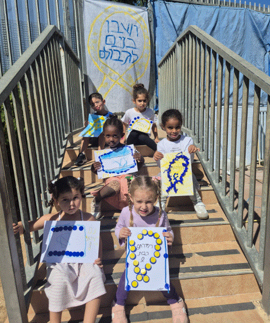 לרגל השבת החטופים נערכה בגן פעילות שיח: "דיברנו על המלחמה ועל הרגשות שהיו לנו, איך הרגשנו ששמענו שהחטופים חוזרים הביתה".