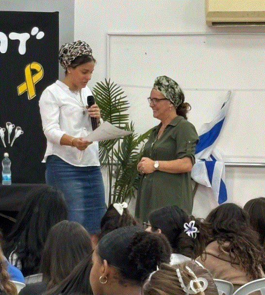 בסיום המפגש, אושרית ונדן, מנהלת החטיבה, העניקה ללטיסיה תעודת הוקרה ומתנה צנועה בשם הצוות והתלמידות, כאות תודה והערכה עמוקה.​